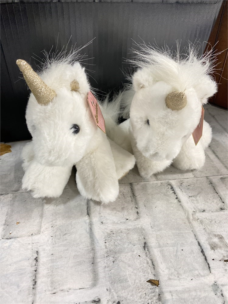 FAO Schwarz 6" Sparklers Baby Unicorn Toy Plush, White Gold, Set of 2