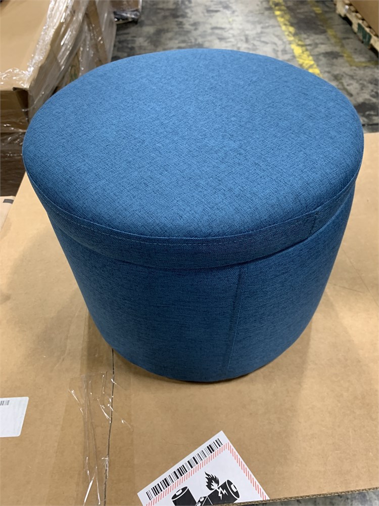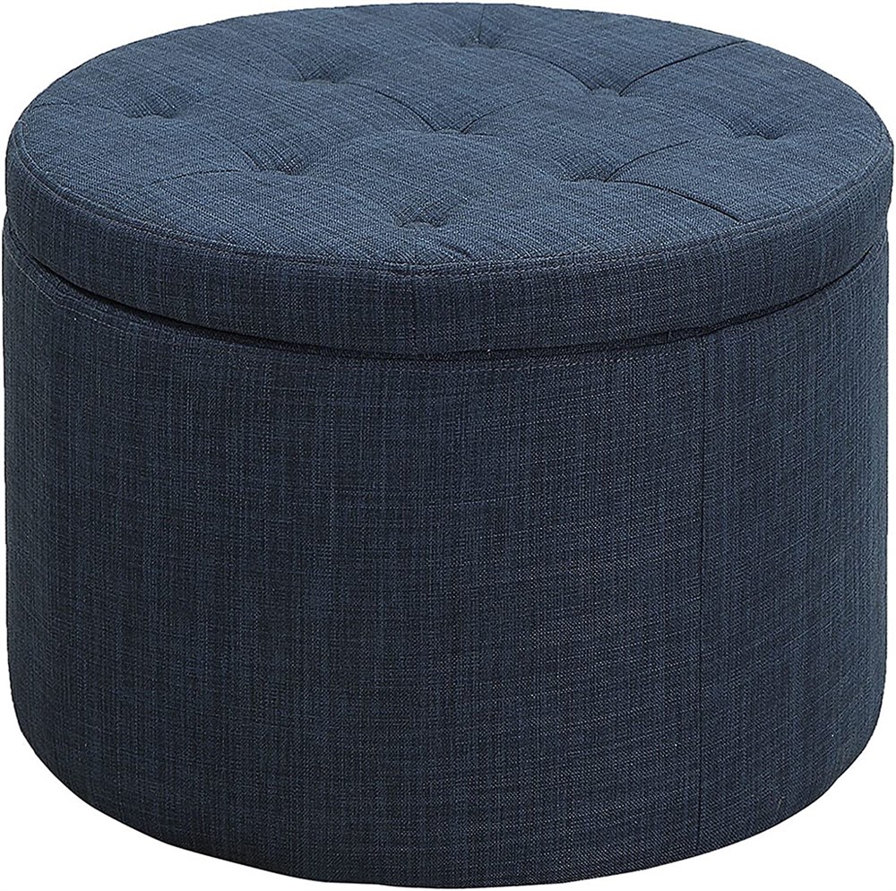Round Storage Ottoman, 14.5x18 Navy Blue