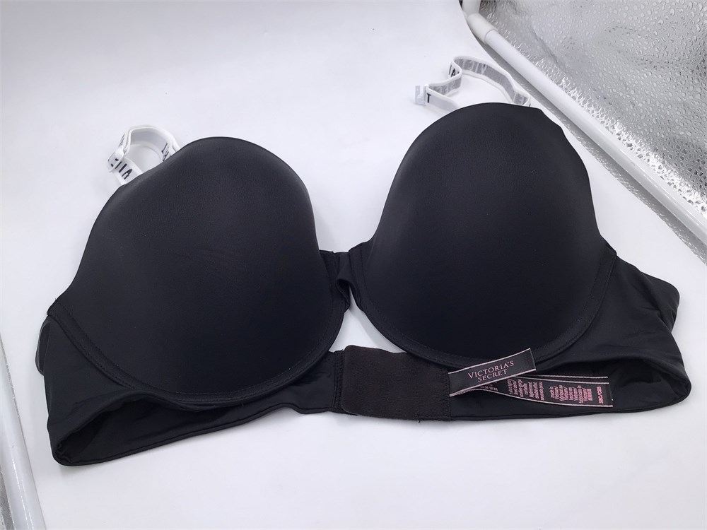 Victoria Secret Black w/White Straps/Black Writing Bra - Wired - Push-Up - 38C