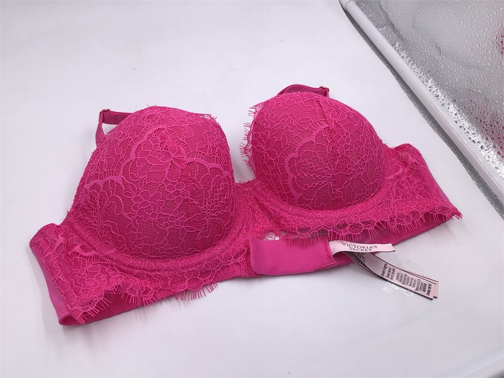 Victoria Secret Magenta Hot Pink w/Floral Lace Bra - Wired - Push-Up - 34B