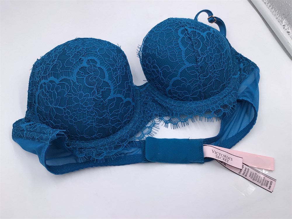 Victoria Secret Teal w/Floral Lace Bra - Wired - Push-Up - 34B