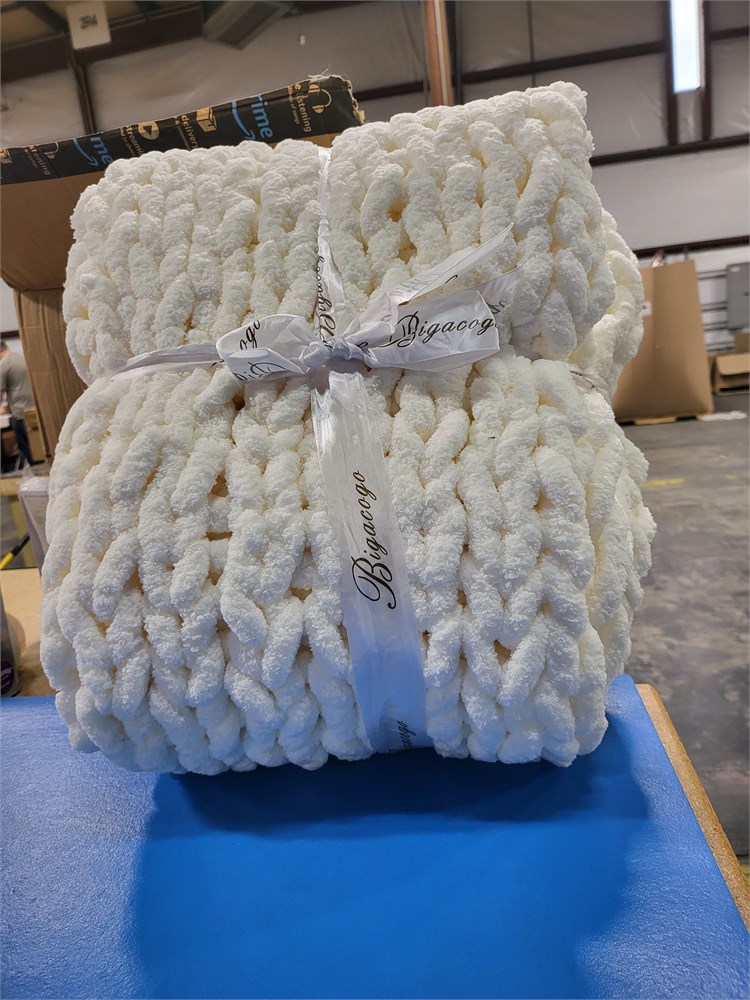 Chunky Knit Blanket Throw 51x63 (Ivory)