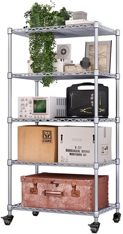 SUOERNUO 5-Shelf Shelving Storage Unit on Wheels - Silver