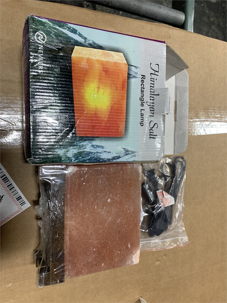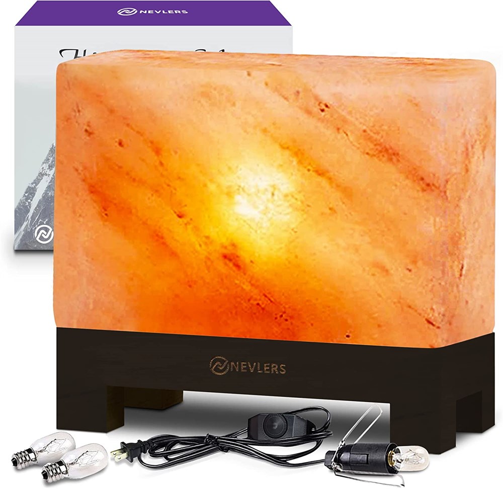 Nevlers Rectangle Shape Pink Himalayan Salt Lamp with Wood Base