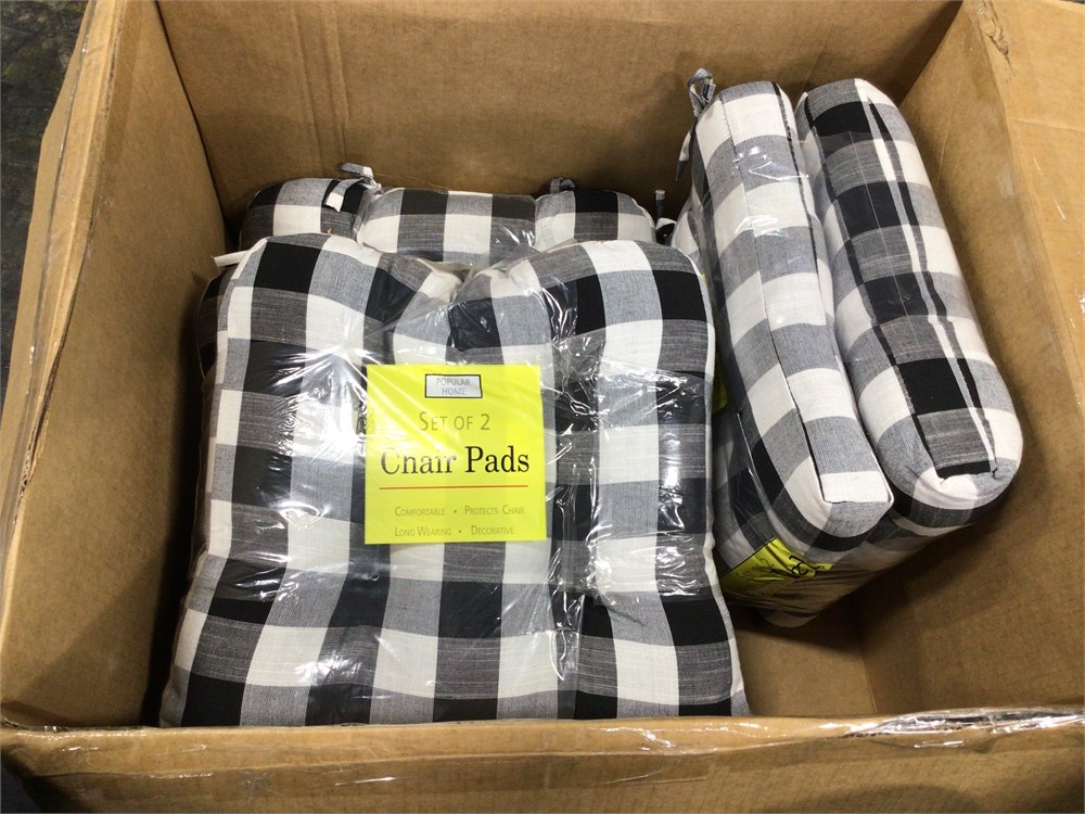 Popular Home Seat Cushion Pad, 2-Pack x QTY 3, Buffalo Plaid Black