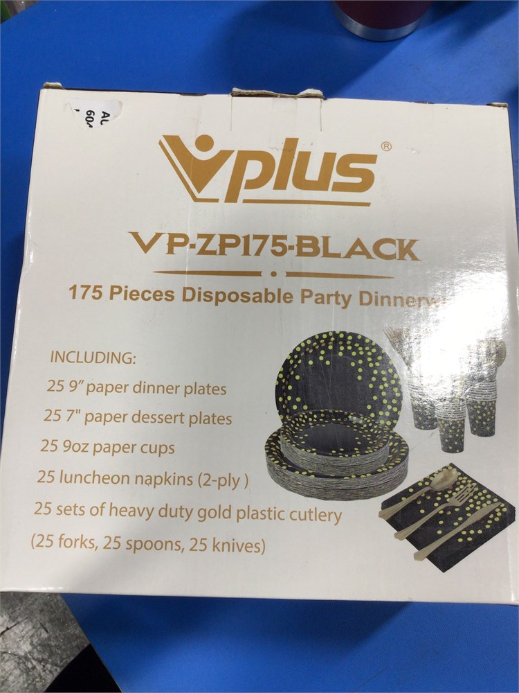 VPlus 175-Piece Disposble Party Dinnerware, Black/Gold