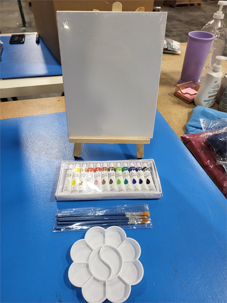 J MARK 22 Piece Acrylic Canvas Painting Kit with Wood Easel