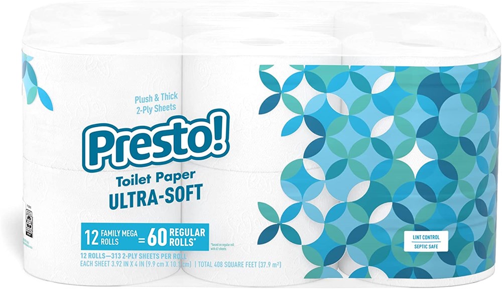 Presto! 2-Ply Sheet Mega Roll Toilet Paper 12 Rolls (2 Packs of 6)