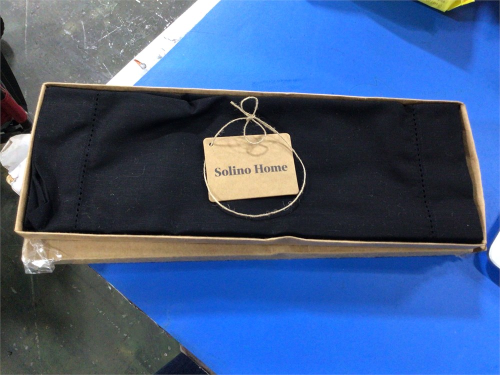 Solino Home Black Linen Placemats 14 x 19 Inch Hemstitch Placemats, 4-Pack