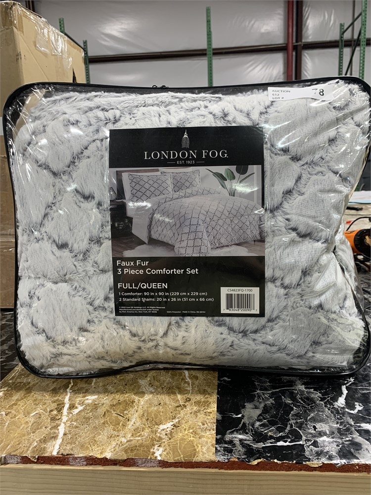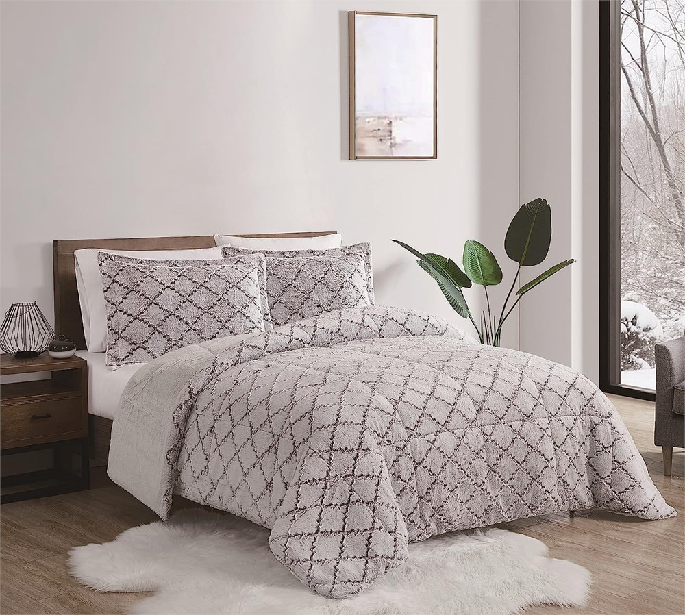 LONDON FOG Textured Ogee Collection, 3pc Comforter Set, Full/Queen, Grey