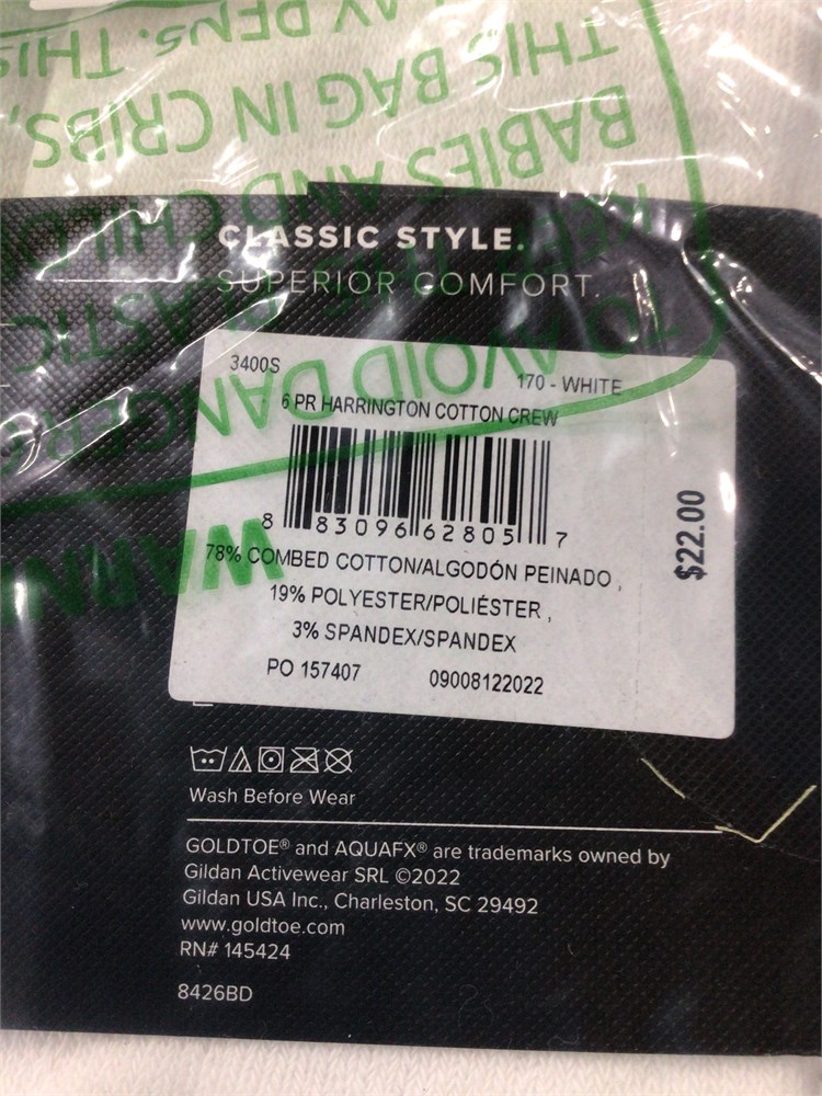 GoldToe Men's Harrington Crew Socks, Multipairs, Large, White