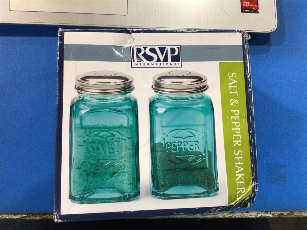 RSVP International Glass Salt & Pepper Shakers, Turquoise