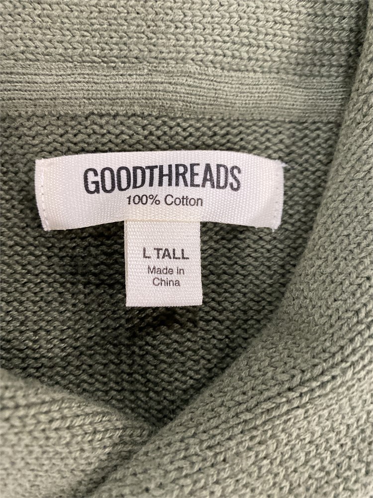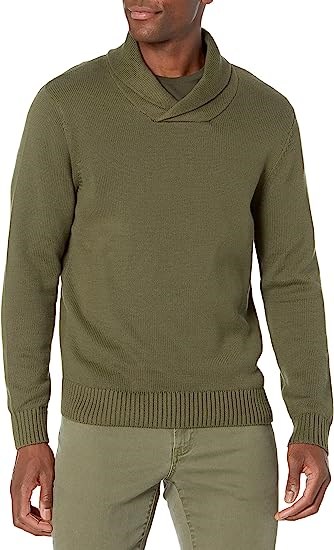 Goodthreads Men's Soft Cotton Shawl Sweater, Olive, Large-Tall