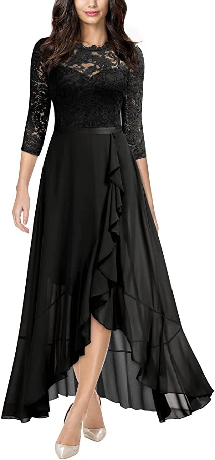 Miusol Women's Elegant Floral Lace Ruffle Bridesmaid Maxi Dress, Medium