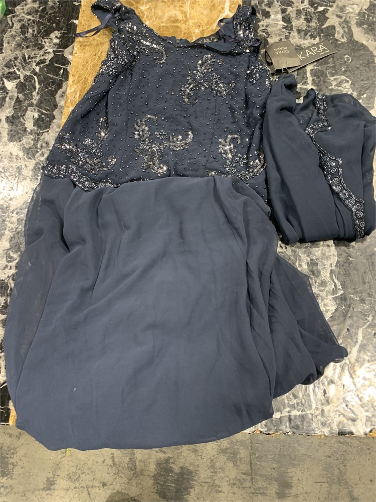 J Kara Womens 2Pc Beaded Jacket/Dress, Navy