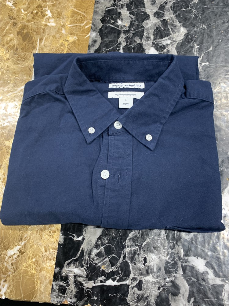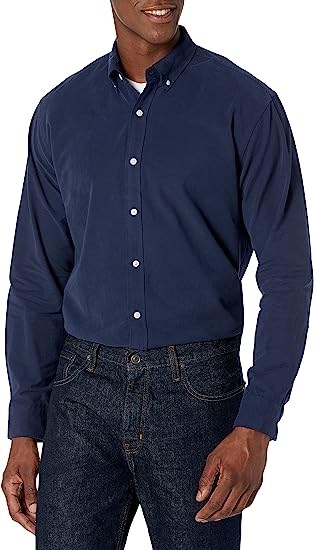 Amazon Essentials Men's Regular-Fit Long-Sleeve Oxford Shirt, Navy, Lg
