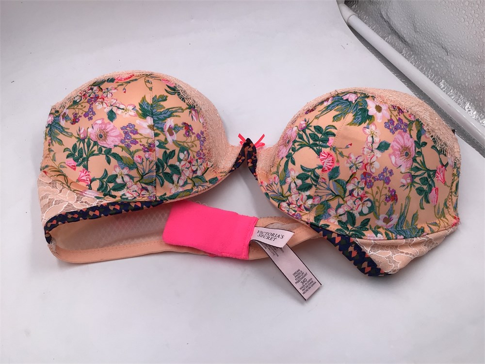 Victoria's Secret Push-Up Bra, 34D, Peach/Floral Print/Lace