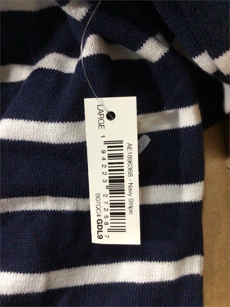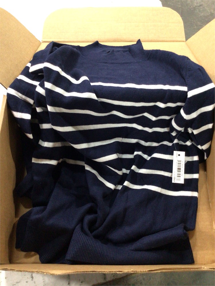 Amazon Essentials Women's Mockneck Sweater, Large, Navy/White Striped