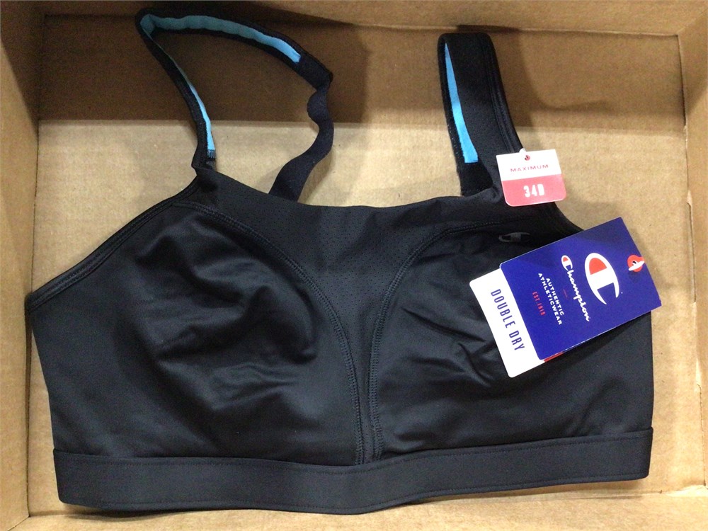 Champion Double Dry Sports Bra, 34B, Black/Blue