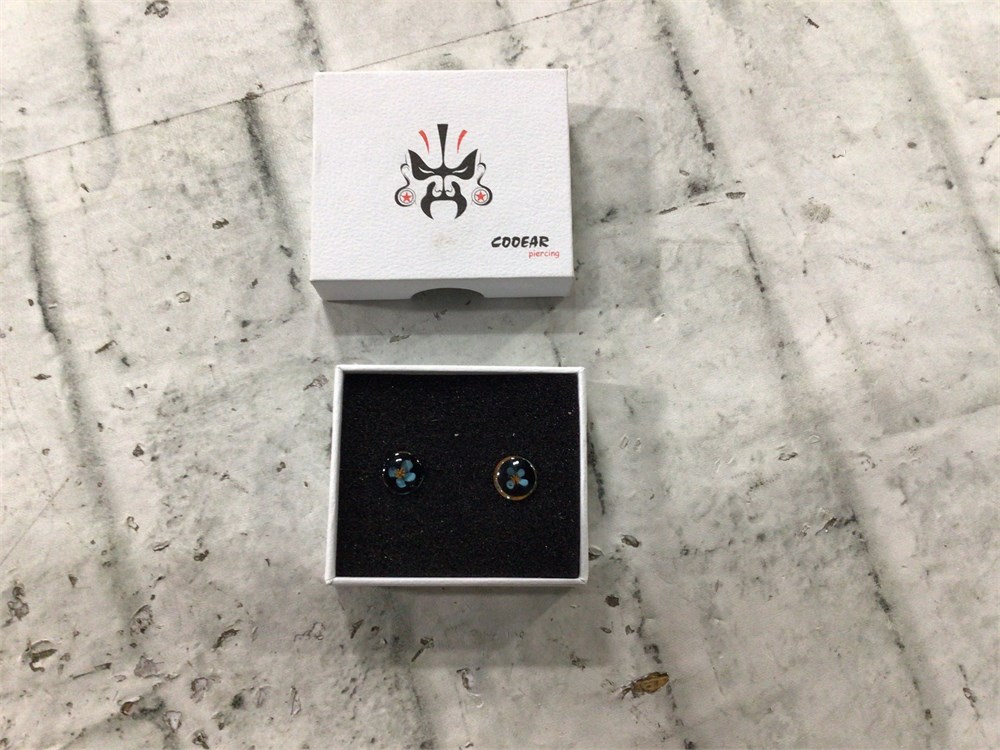 KUBOOZ 1 Pair Glass Blue Flower Ear Gauges, 8-16mm