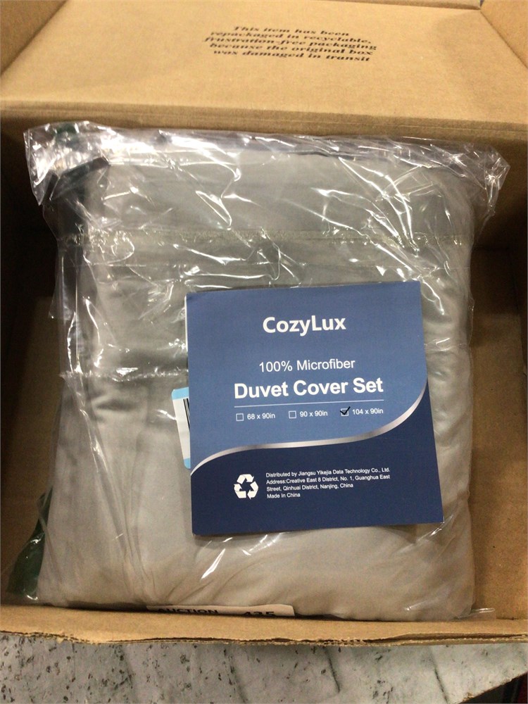 CozyLux Microfiber Duvet Cover Set, 104 x 90-Inch Full/Queen, Light Gray