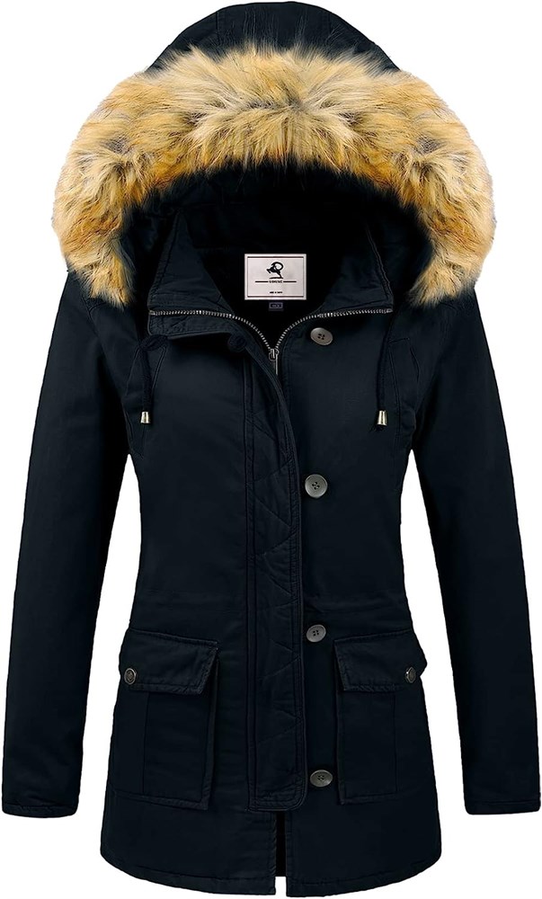 Uoiuxc Women's Winter Puffer Jacket with Fur Hood, XL, Navy
