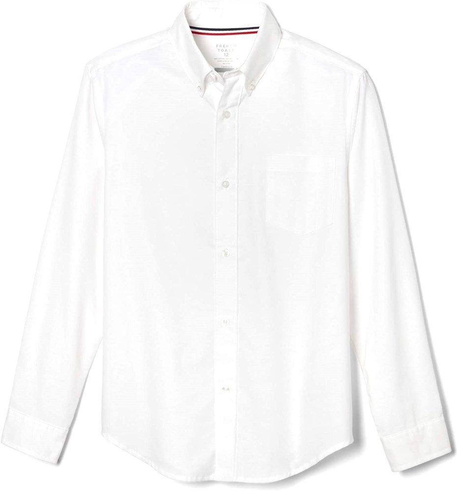 French Toast Boys Long Sleeve Oxford Shirt (Standard & Husky), White, 10 Husky
