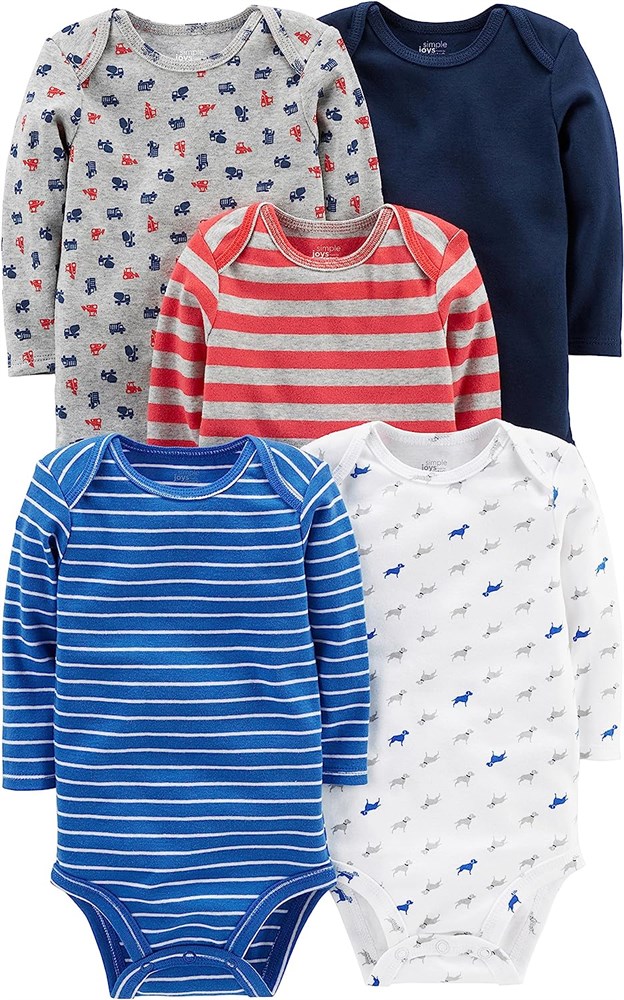 Simple Joys by Carter's Baby Boys' Long-Sleeve Bodysuit, Pack of 5 24M