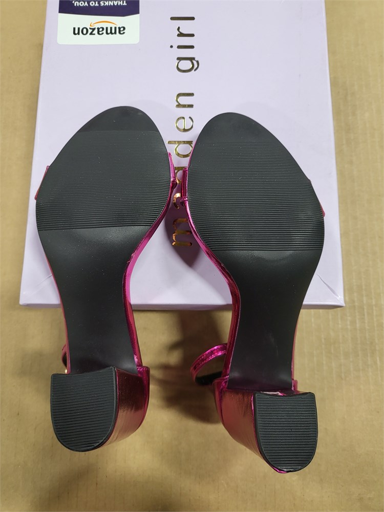 New - Madden Girl Women's Beella Heeled Sandal, Hot Pink Metallic, 7-NO Signs of Any Use