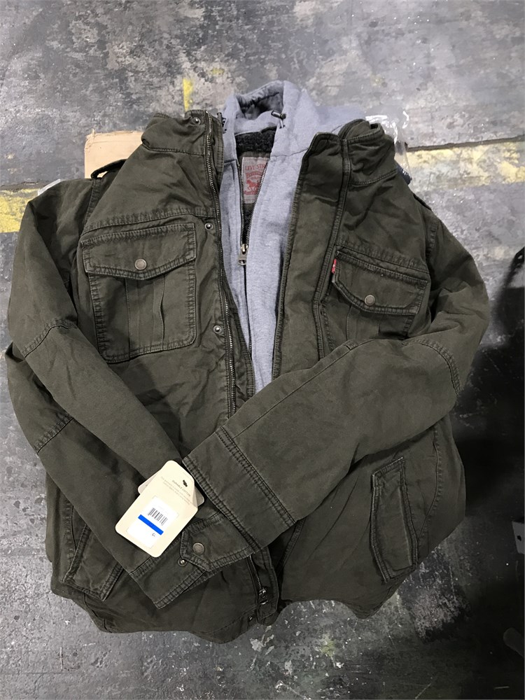 Levi's Men's Washed Cotton Hooded Military Jacket - Olive - XLT