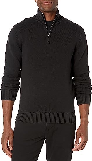 Goodthreads Men's Soft Cotton Quarter-Zip Sweater, Black, Large Tall