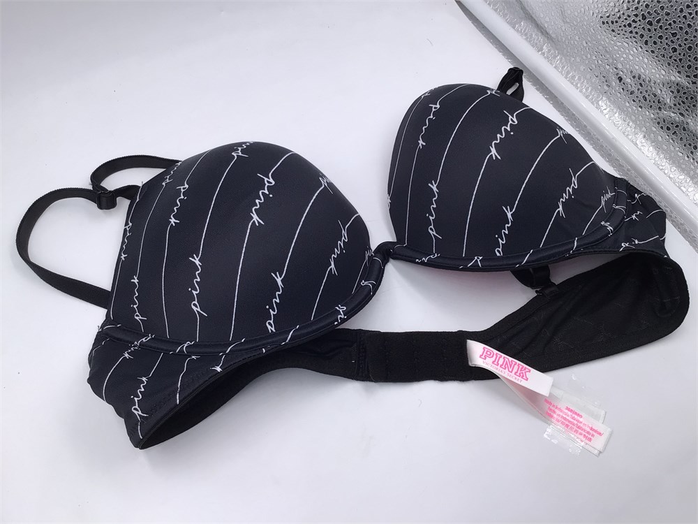 Victoria's Secret Pink Push-Up Bra, 36B, Black/Pink Logo