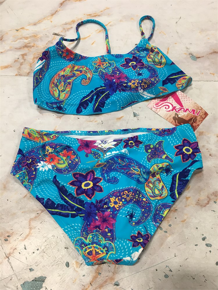 Kanu Surf Girls' Alania Flounce Bikini Beach Sport 2 Piece Swimsuit, Size 14