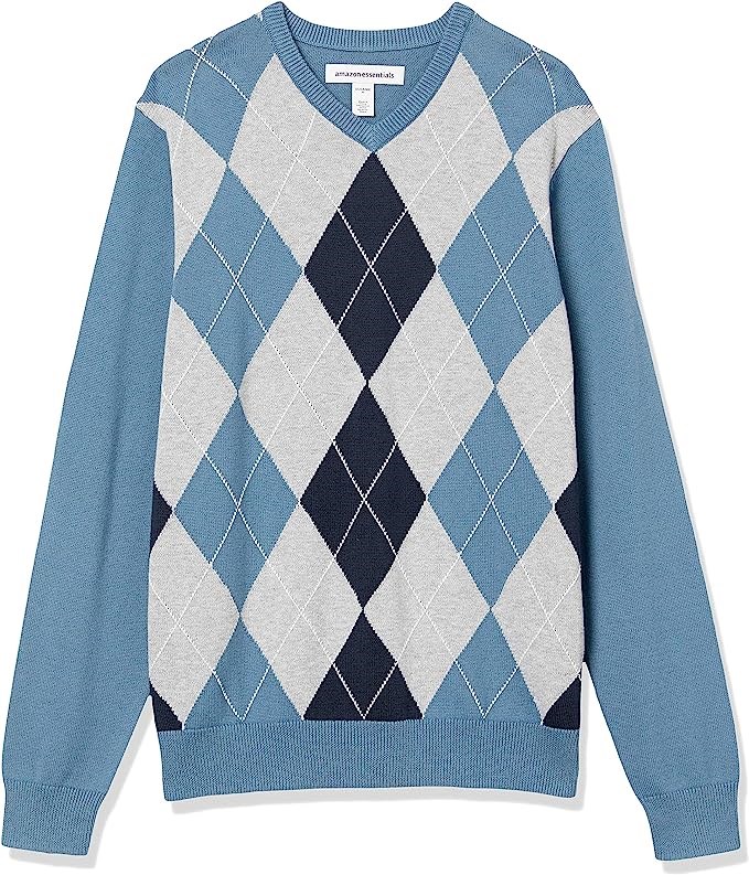 Amazon Essentials Men's V-Neck Sweater, Medium, Blue Argyle