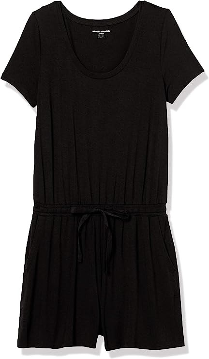 Amazon Essentials Women's Short-Sleeve Scoop Neck Romper, Medium, Black