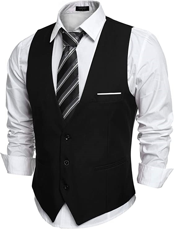 COOFANDY Men's Formal Dress Waistcoat Vest, XXL, Black