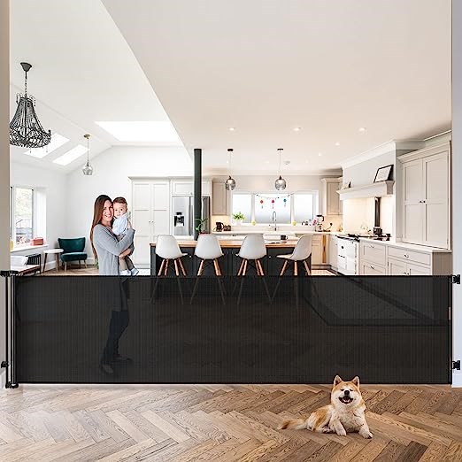 Mom's Choice 120-Inch Extra Wide Retractable Baby Gate for Large Opening, Black