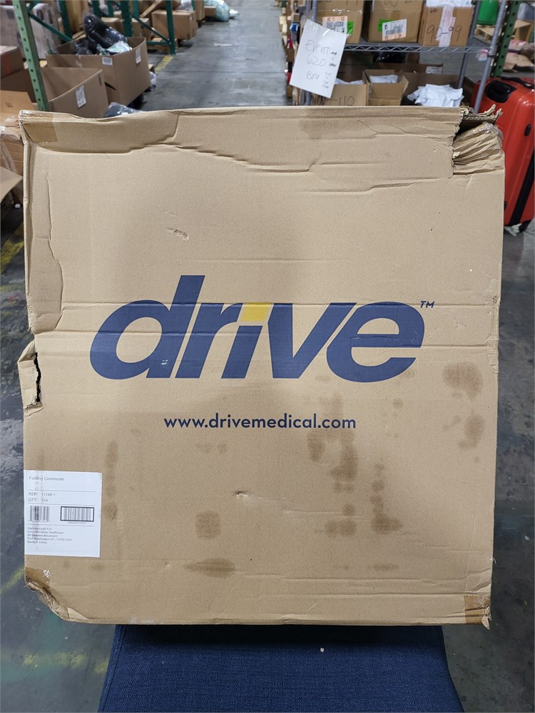 Drive Medical 11148-1 Folding Steel Bedside Commode Chair, Portable Toilet, Grey