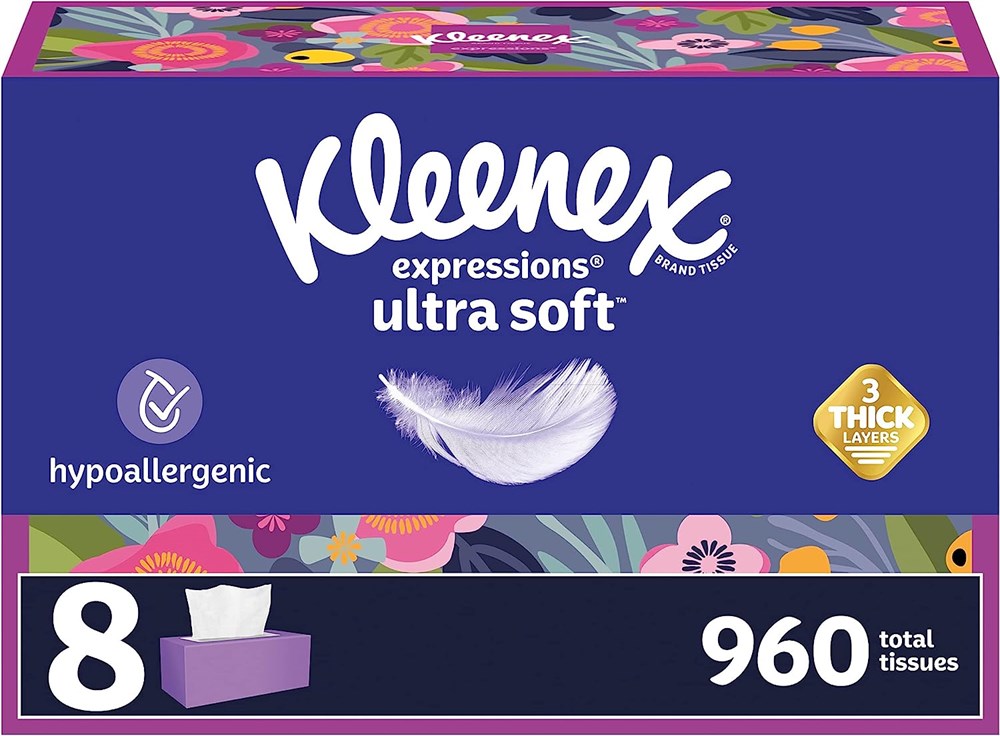 Kleenex Expressions Ultra Soft Facial Tissues, 8 Flat Boxes