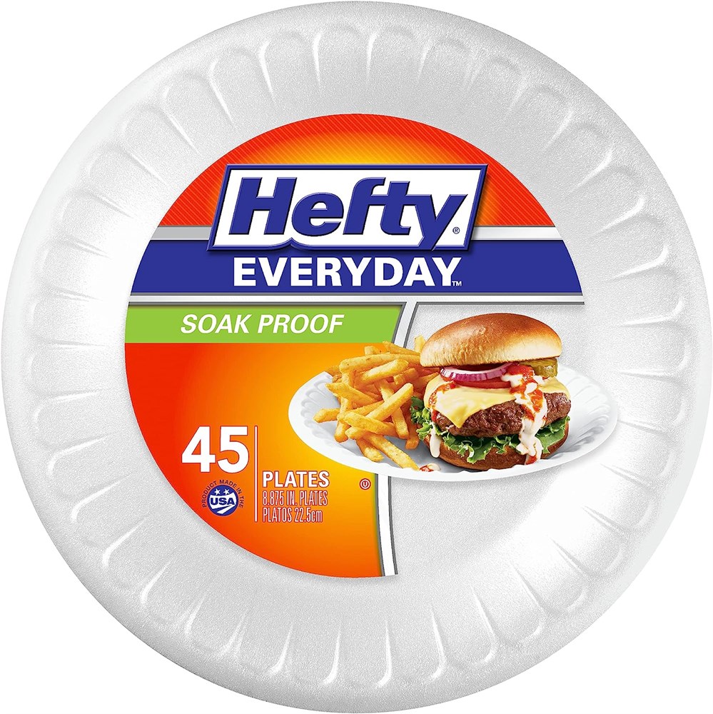 Hefty Everyday Foam Plates, 9 Inch Round, 45 Count (Pack of 12), 540 Total