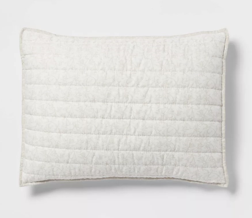 Standard Printed Floral Voile Reversible Quilt Sham Ivory/Beige- 20x26- Set of 2