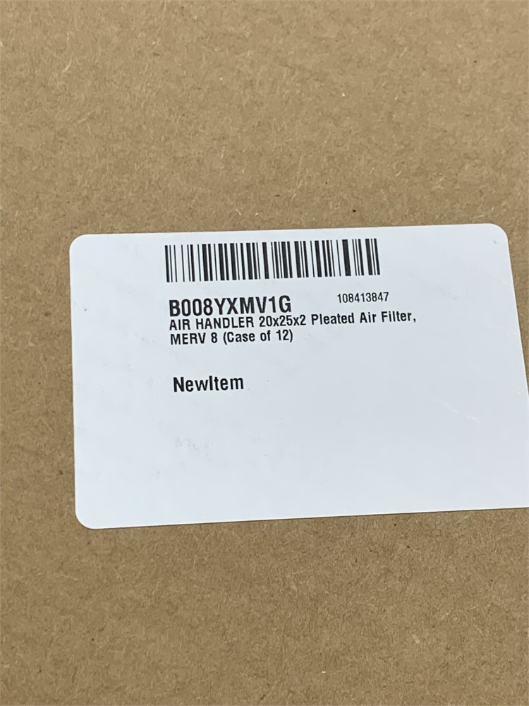 AIR HANDLER 20x25x2 Pleated Air Filter, MERV 8 (Case of 12)