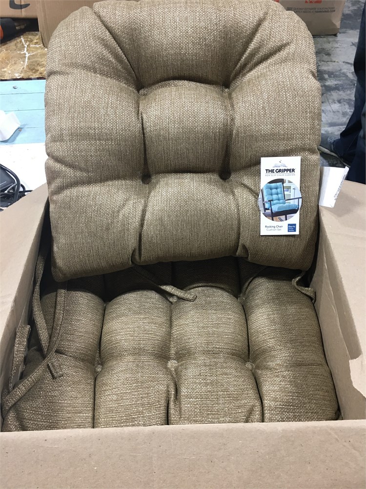 The Gripper Twill Jumbo XL Non-Slip Rocking Chair Cushion Set, Brownstone