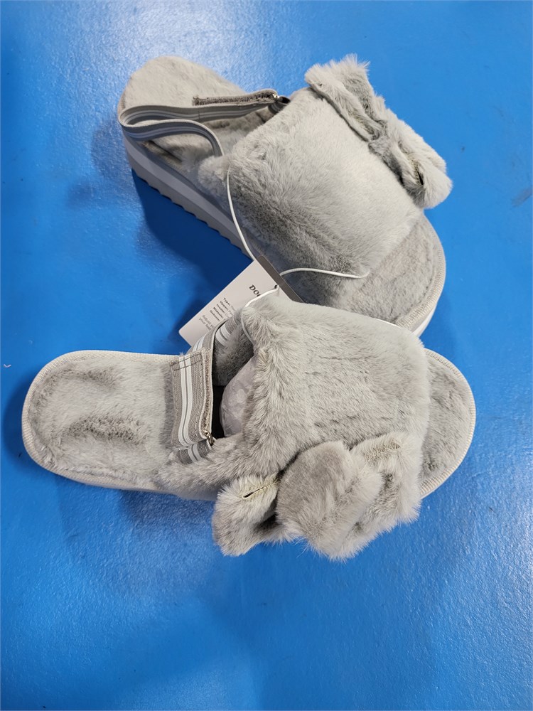 DOGDAN Women's Fluffy Slipper Open Toe, Soft Fuzzy, Grey Size 7