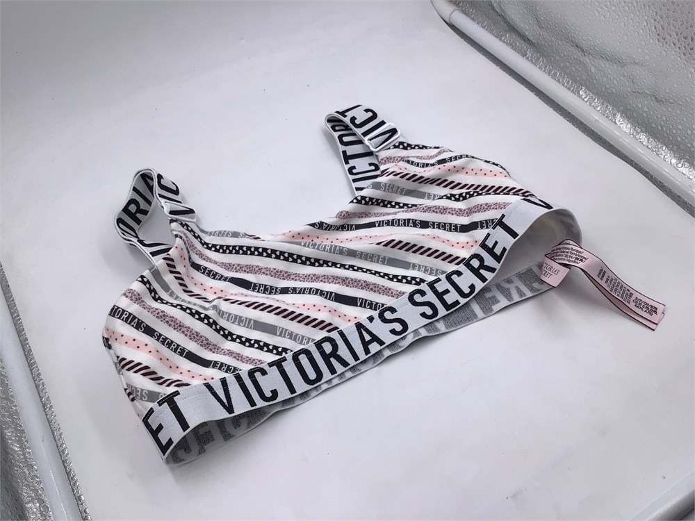 Victoria's Secret Sports, Small, White/Logo Stripes - Wireless Bra