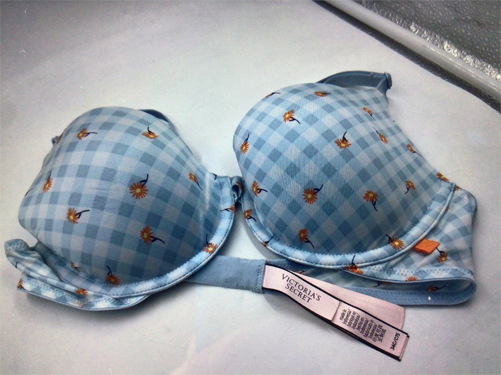 Victoria's Secret Push-Up, 34C, Light Blue Plaid/Floral Print - Wired Bra