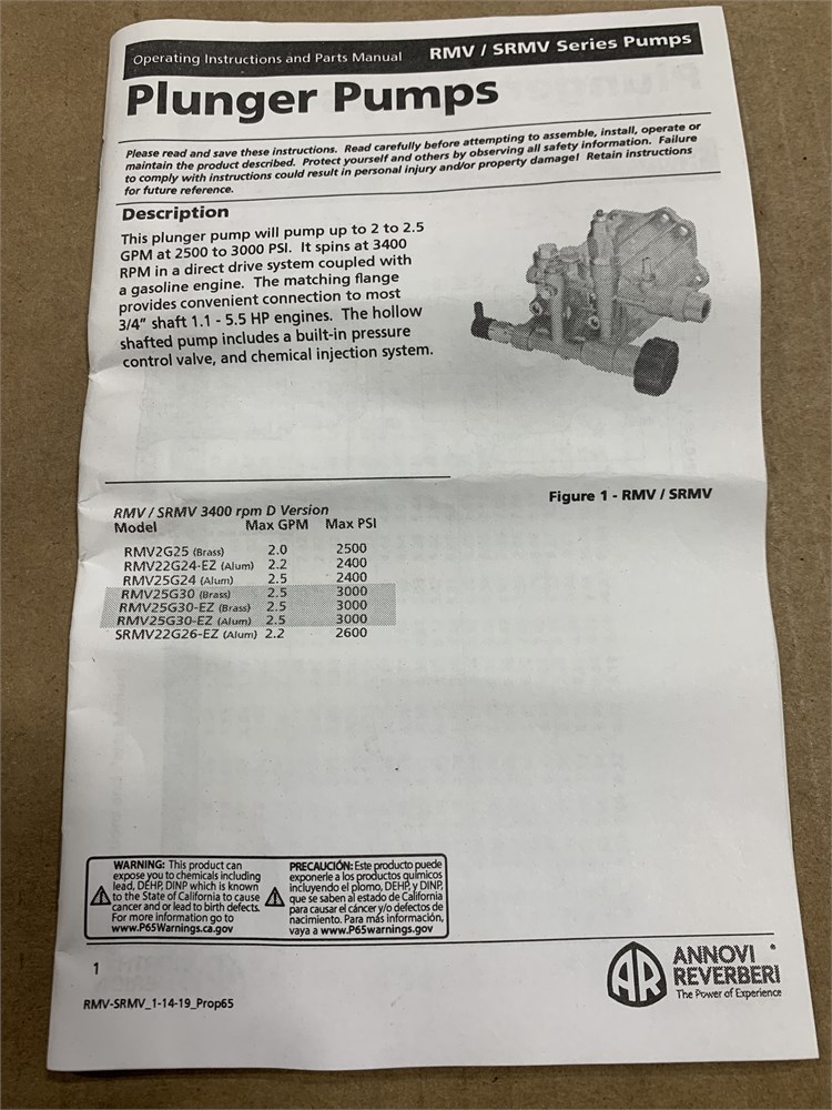 RMV25G30D-EZ-PKG, Replacement High Pressure Pump