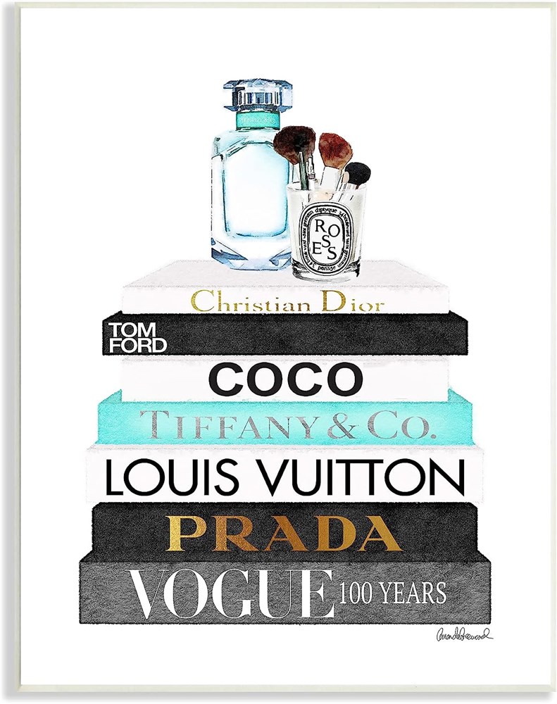 Stupell Industries Book Stack Perfume Brushes Watercolor, 12.5x18.5, Plaque