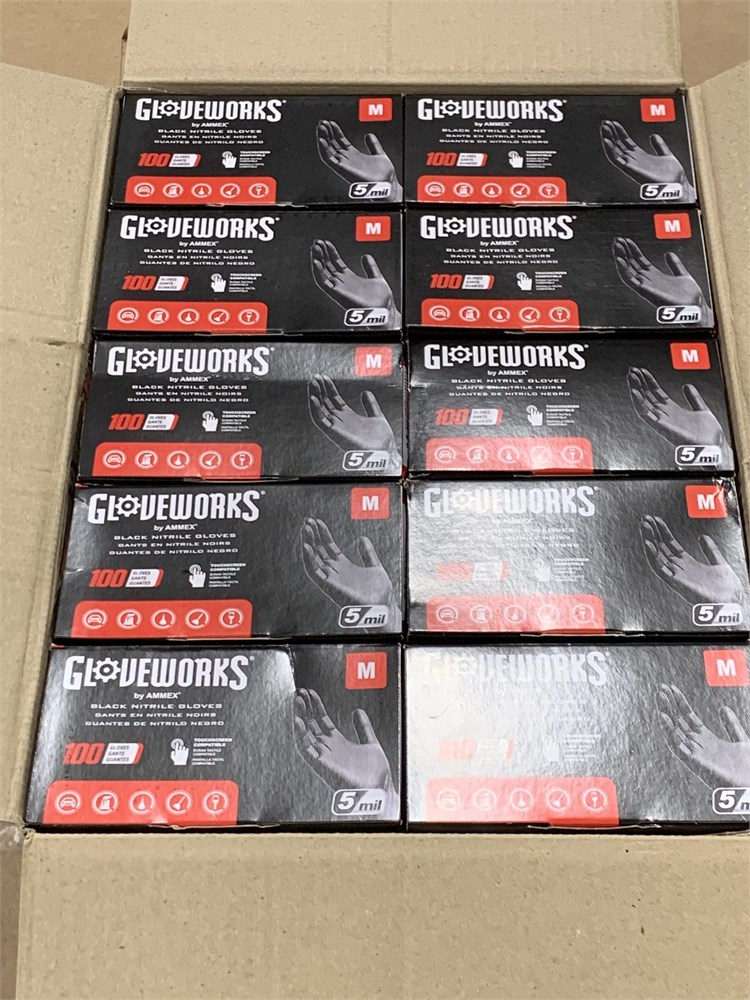 GLOVEWORKS Industrial Black Nitrile Gloves, Med, 1000 Ct