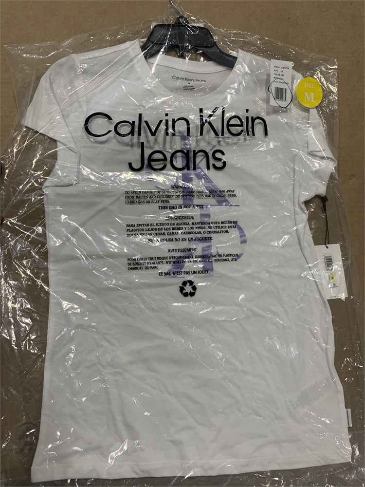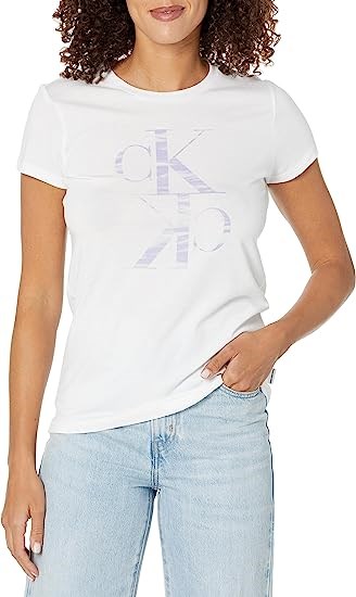 Calvin Klein Women's Matte Plastisol Wave Design Logo Short Sleeve Shirt